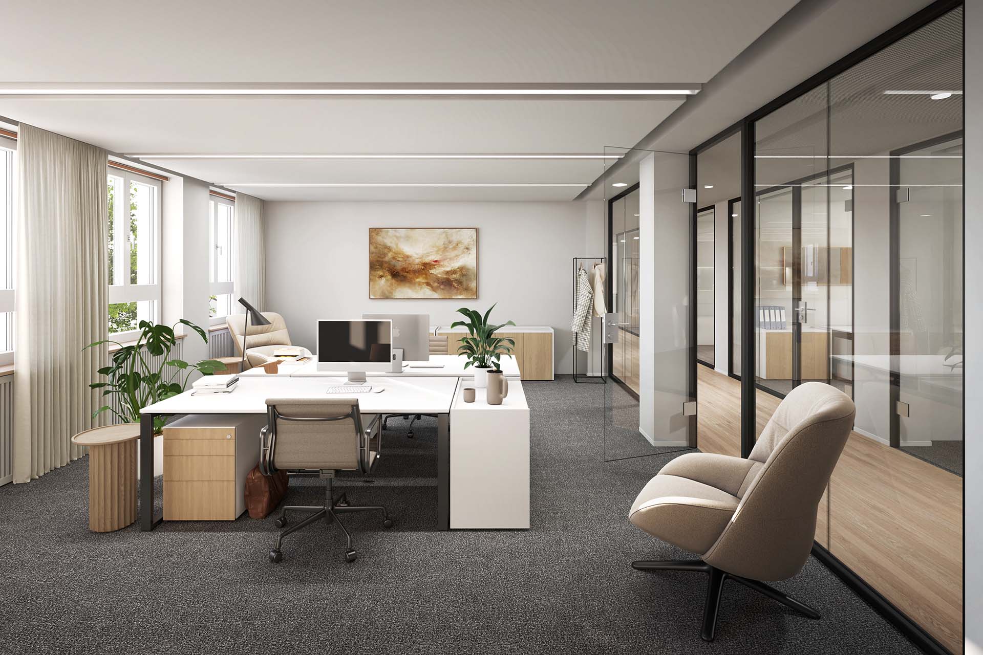 Flexible Ausbauraster ermöglichen Mieteinheiten mit einer Größe von max. 1.000 m² pro Etage, in denen sich alle modernen Büroraumlösungen realisieren lassen.